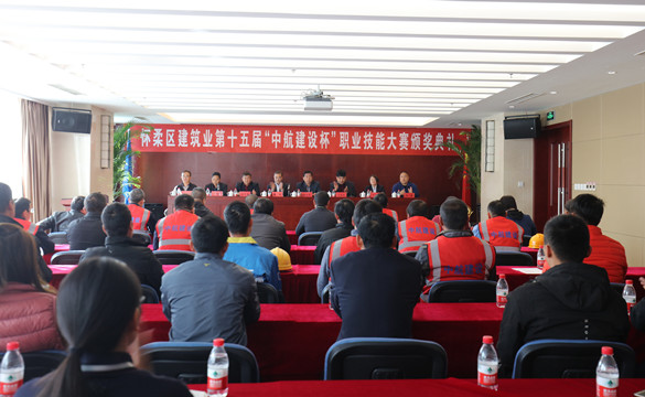 10月25日上午,怀柔区建筑业第十五届“中航建设杯”职业技能大赛颁奖典礼在中航建设集团总部三层多功能厅举行。怀柔区建筑业协会会长、大赛组委会副主任王贵军,区总工会副主席解忠明,集团公司总工程师、大赛组委会副主任陈劲一同参加,同时到场的还有各参赛单位代表及获奖选手共计50余人。